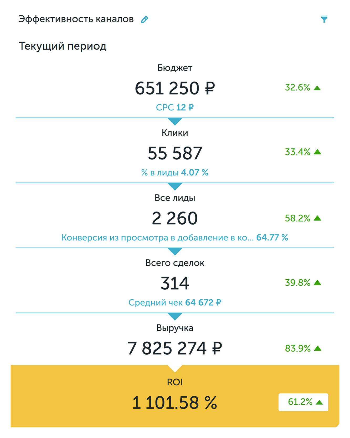 Чёткий прогноз по лидам, конверсии и выручке. Вы знаете, какой результат получите через месяц и квартал.