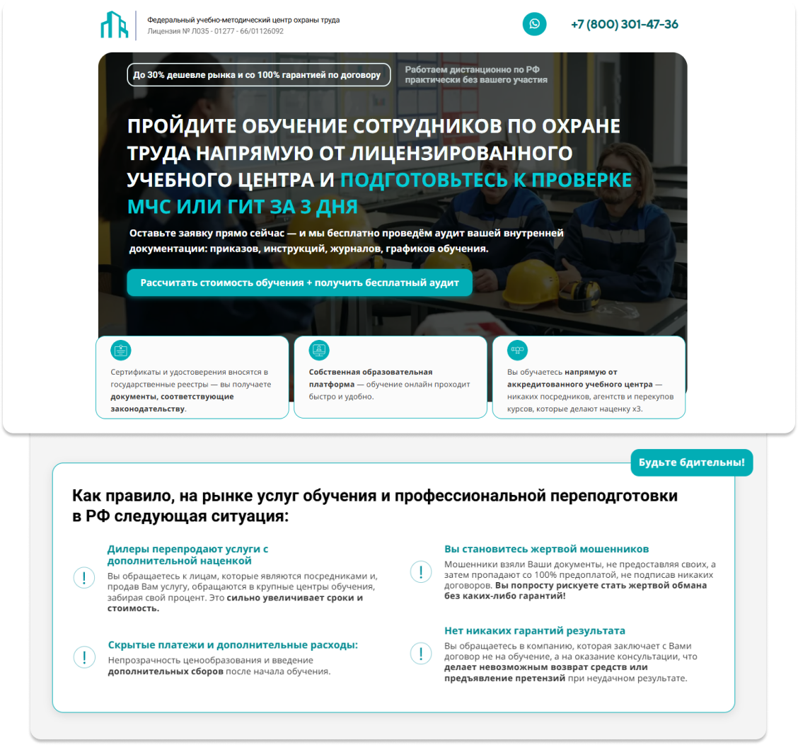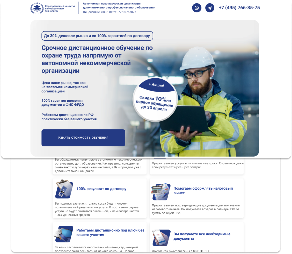 700-900 квалифицированных лидов на мед аккредитацию, обучение охране труда и другим рабочим специальностям