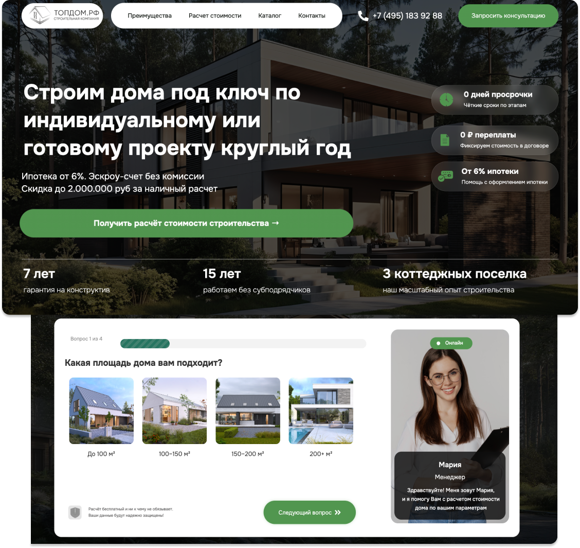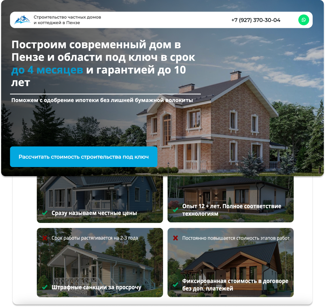 Оставьте заявку и узнайте, как мы приводим платёжеспособных клиентов для строительных компаний, работающих в сегменте частных домов под ключ: