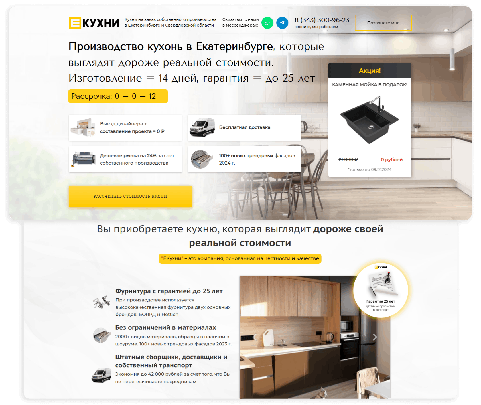 Оставьте заявку и получите аудит рекламы и сайта от агентства, которое ведёт мебельный бизнес. Мы покажем, как превратить этот спрос в стабильные 15+ продаж кухонь ежемесячно с чеком от 200 000 ₽ и занять лидирующие позиции в вашем городе.