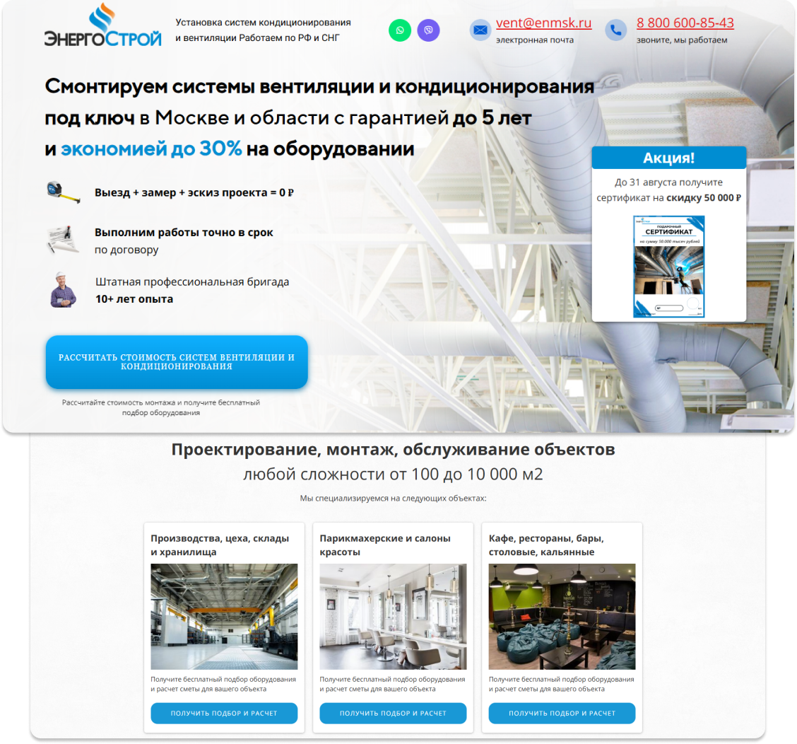 Оставьте заявку и получите полноценный аудит вашей рекламы и сайтов от руководителя маркетингового агентства, которое специализируется на B2B-нишах — покажем, как отсечь “случайные” заявки и выстроить поток заказов от клиентов, которые строят объекты от 1 000 м² и закупают вентиляцию с монтажом, а не ищут самую низкую цену