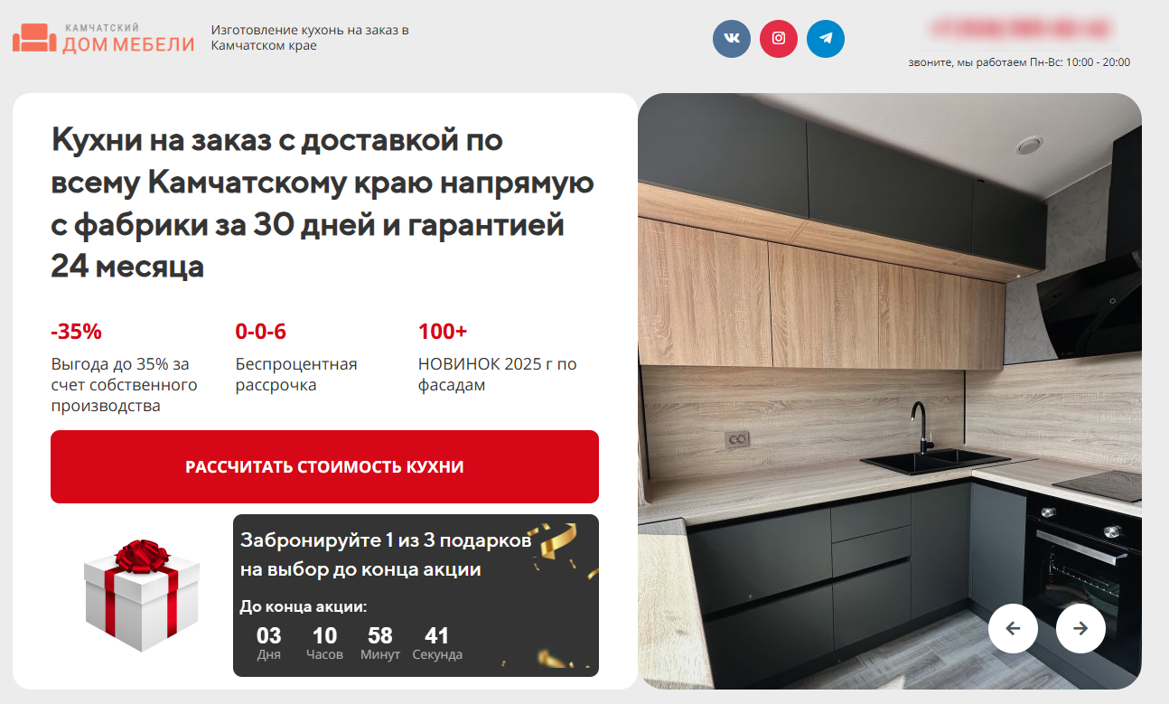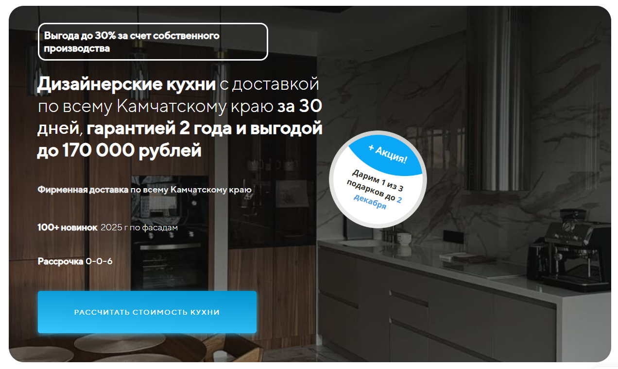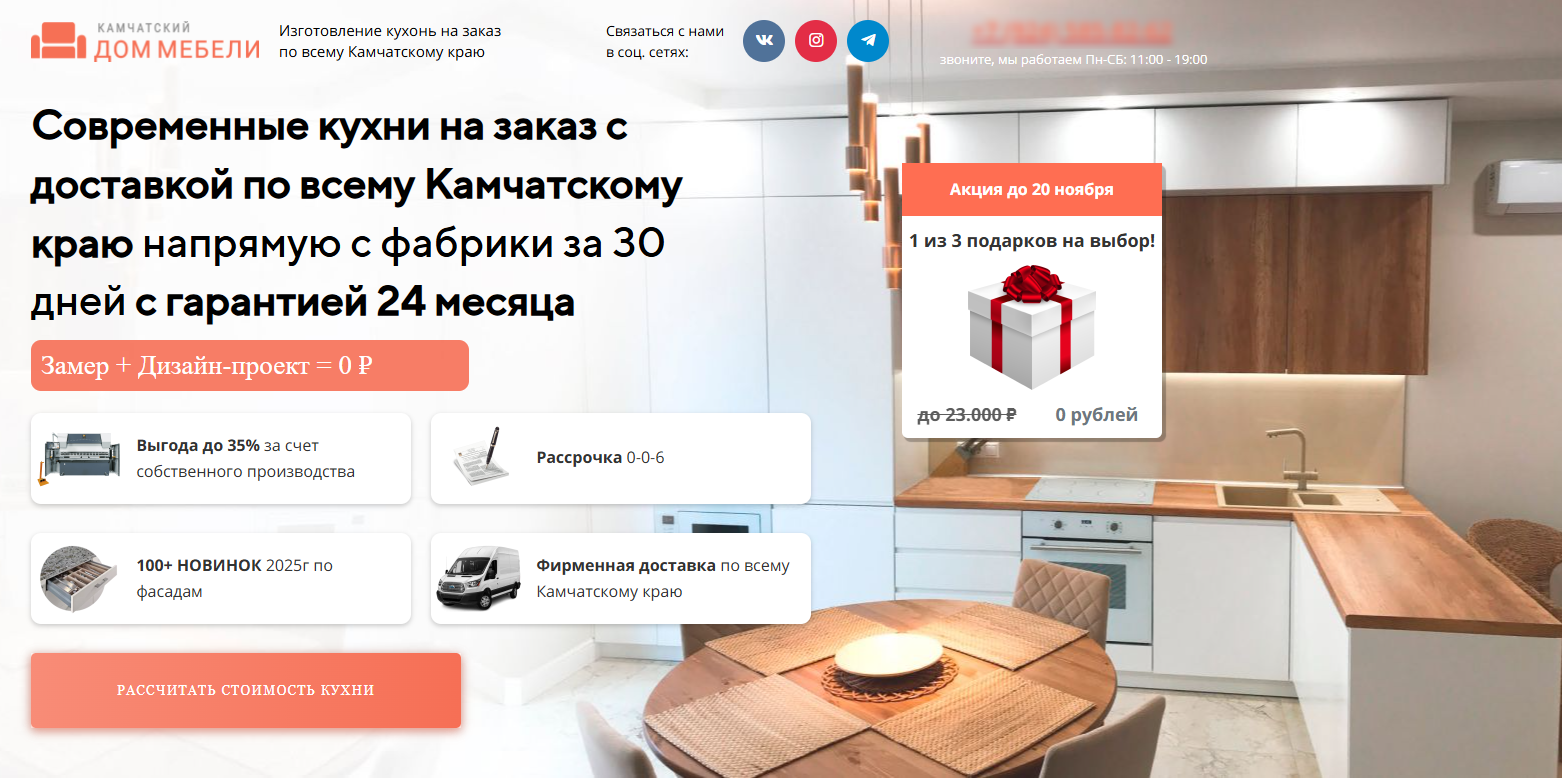 Так начался наш проект с компанией, занимающейся изготовлением и продажей кухонь под заказ в одном из самых удалённых регионов России — на Камчатке.