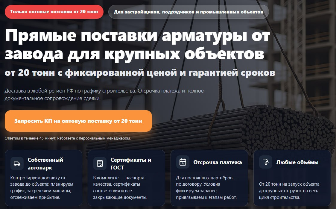 Если вы поставляете металлопрокат, стройматериалы или промышленное оборудование, и у вас до сих пор нет системного потока клиентов — мы покажем, как за 30 дней выйти на 90+ заявок от компаний и застройщиков.