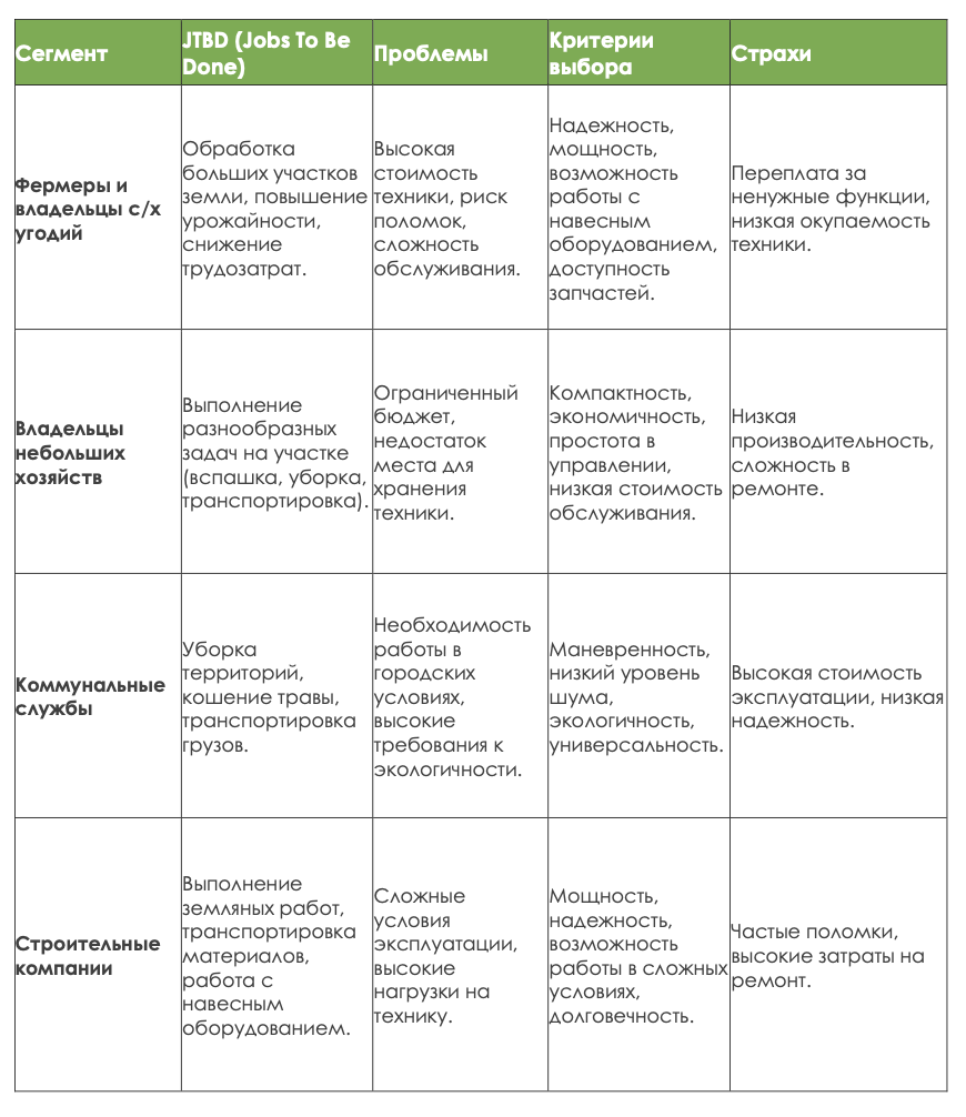🚦 Целевая аудитория была условно разделена на несколько сегментов (сельхоз, коммунальные услуги, строительство, частные хозяйства), но не было глубокого понимания их конкретных болей, возражений и мотивации.