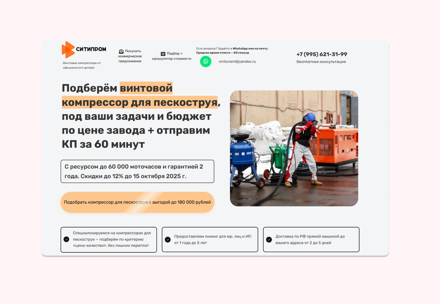 Как в нише B2B-оборудования выйти с нуля на 7,7 млн ₽ выручки за 4 месяца — кейс винтовые компрессоры “Ситипром”