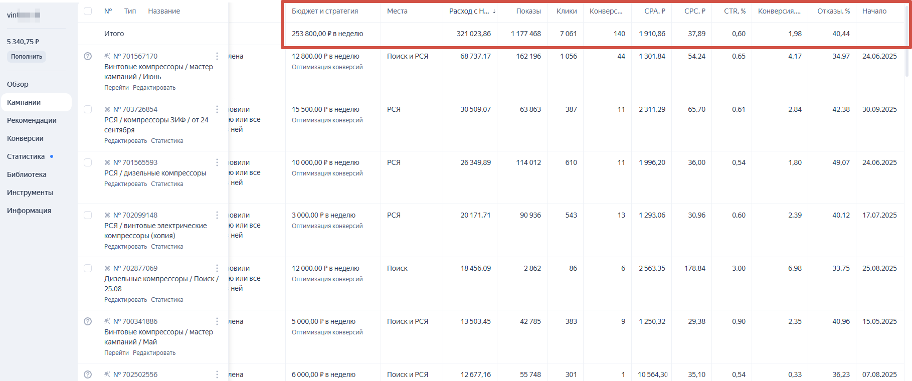 На этом этапе (в июне) была получена первая продажа электрического компрессора — модель недорогая, но именно она показала, что реклама начала работать и стала приносить реальные результаты.
