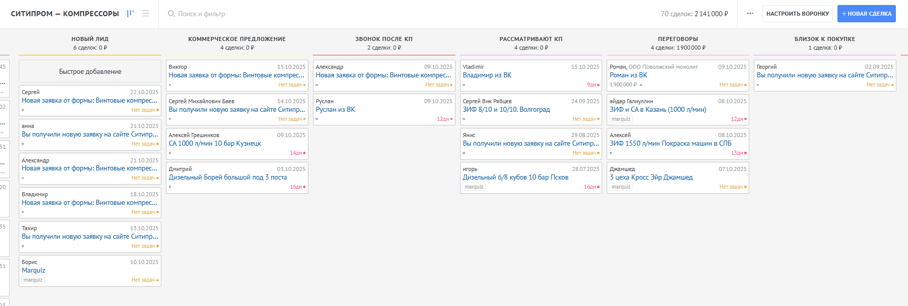 «Ситипром» — это начинающая организация, которая только начинала развивать свою деятельность и заниматься дилерством винтовых компрессоров. Компания находится в подмосковном городе Серпухов и на старте пути столкнулась с отсутствием маркетинговой стратегии, неэффективными рекламными каналами и полным отсутствием системности в продажах.