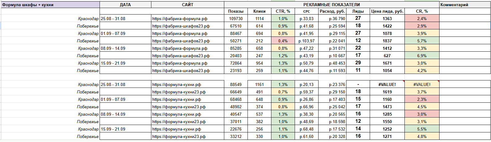 Например, в ходе работы мы столкнулись с тем, что в городах побережья очень низкая конверсия (0,1% - 0,3%) в заявку с высокой стоимостью лида (до 10 тыс. руб.).