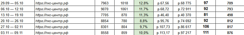 В данном проекте не было сквозной аналитики и собственник пока не готов был ее внедрять, поэтому договорились, что нам будут предоставлять информацию с табличкой xls, чтобы мы следили за качеством и повышали конверсию в целевой лид.