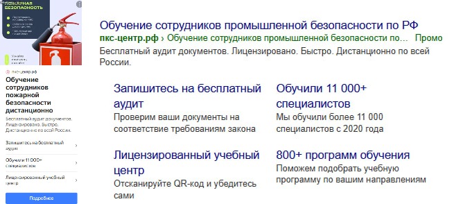 В текстах сделали упор на отличительные преимущества: работаем по РФ дистанционно, без отрыва от работы, бесплатный аудит компании .