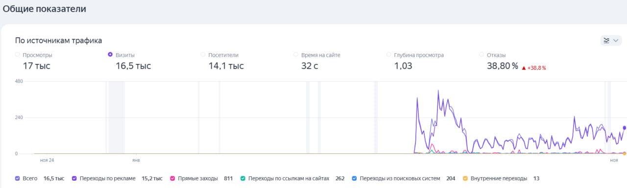 На данный момент мы тратим ежемесячно 300 000+ рублей и получаем около 400 заявок по цене 700-800 руб. Трафик дорожает при масштабировании, но фин. модель заказчика сходится, так как отлаженный отдел продаж работает с конверсией 20-25% в договор, что также является ключевым моментом в нашей работе.