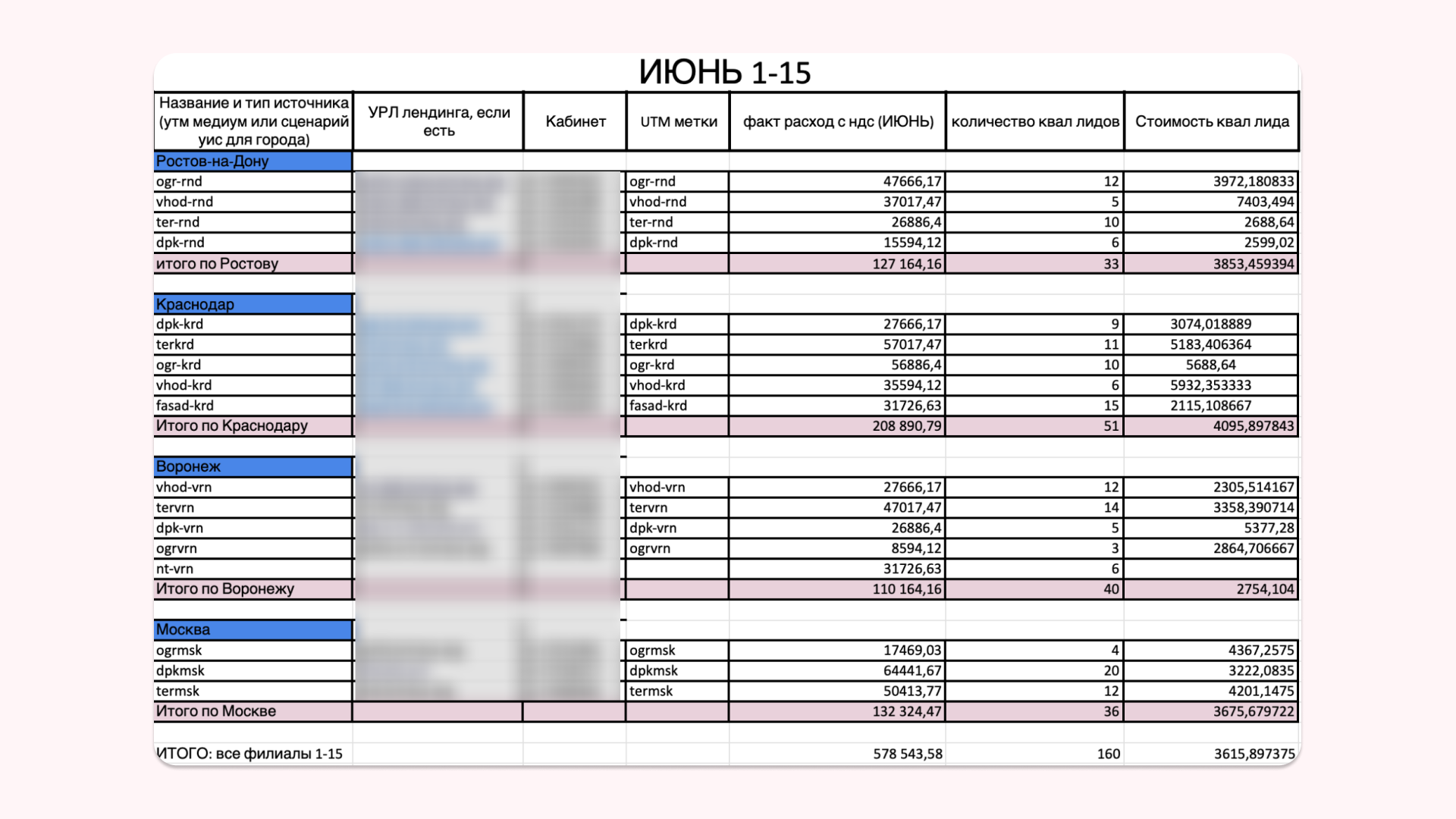 Во второй половине месяца заказчик решил приостановить рекламу в двух регионах, поэтому мы скорректировали план по квал. лидам на июнь.