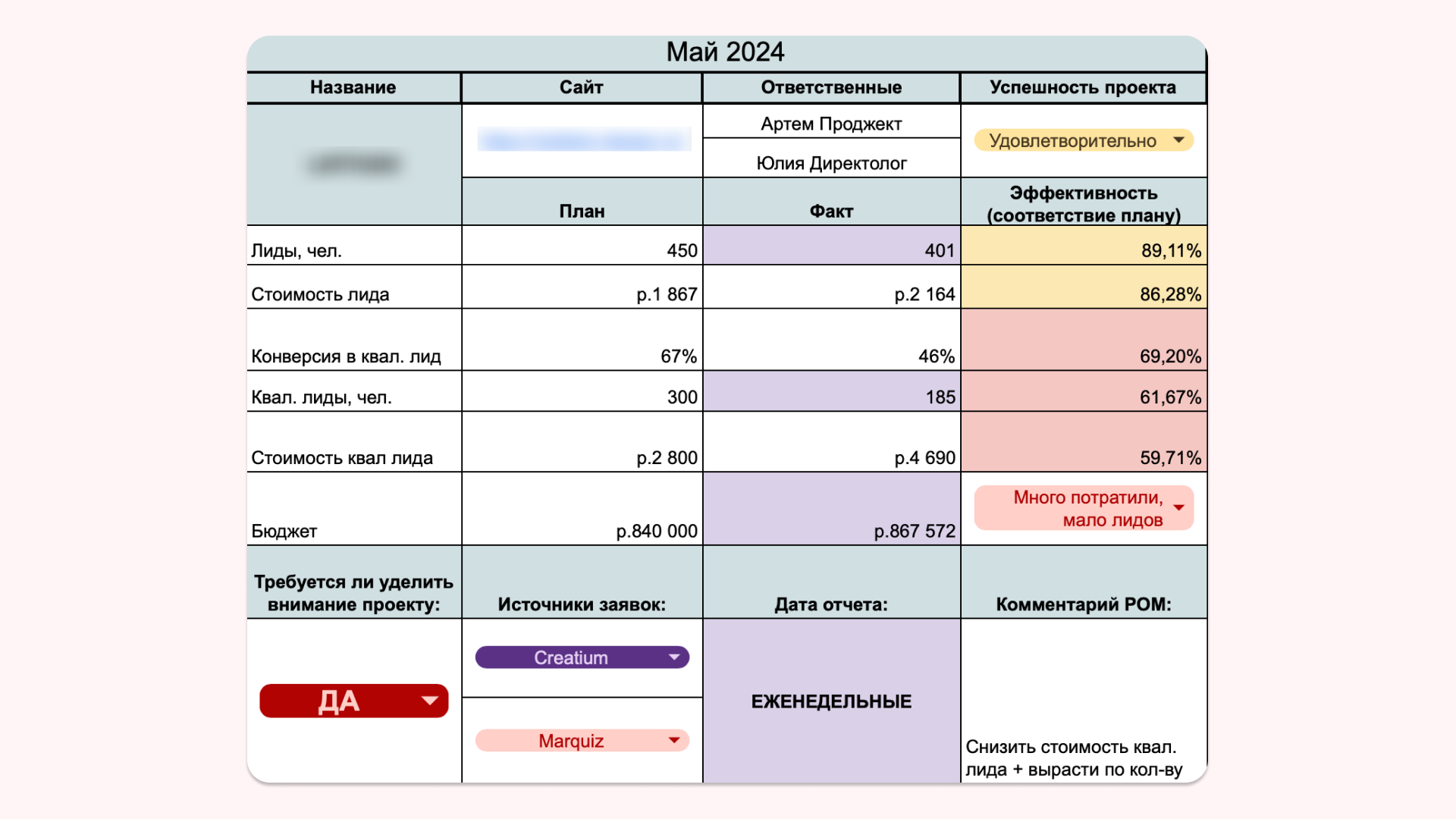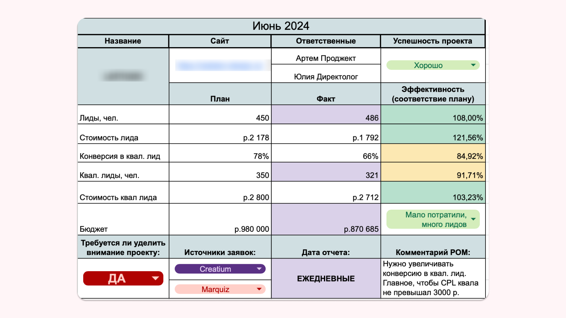 На июнь поставили план: 350 квалифицированных лидов + снизить стоимость CPL до 2800 рублей.